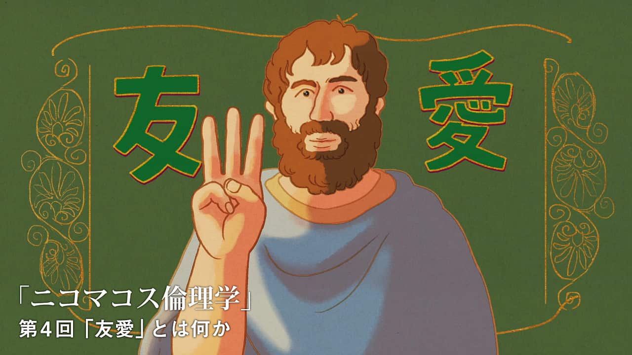 人間は「社会的動物」であり、人間と人間との深いつながりなしには、幸福な人生は考えにくい。そのような人間同士の相互的な絆のことを、アリストテレスは「友愛」と呼ぶ。 アリストテレスは、友愛を「人柄のよさに基づいた友愛」「快楽に基づいた友愛」「有用性に基づいた友愛」と三分類。「友愛は愛されることよりも愛することに本質がある」と分析する。自己愛と友愛の関係など彼の友愛論は「愛」について考察するための豊かな素材に満ちている。第四回は、最も有名な友情論と言っても過言でないアリストテレスの友愛論を紹介して、人間にとって「友情」とは何か、真の「愛」とは何かに迫っていく。