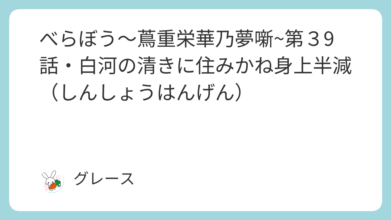 第39話・白河の清きに住みかね身上半減(しんしょうはんげん)