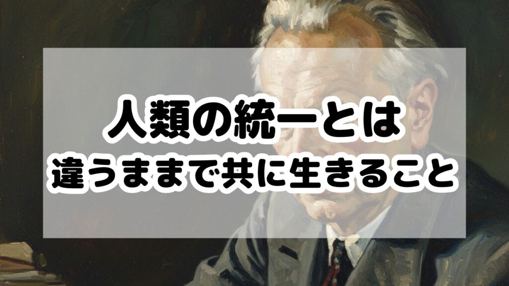 カール・ヤスパースが語った「人類の統一」とは、世界を一つの思想や価値観で同一化することではなく、違いを認めながら人類が共に存在していくことを意味します。